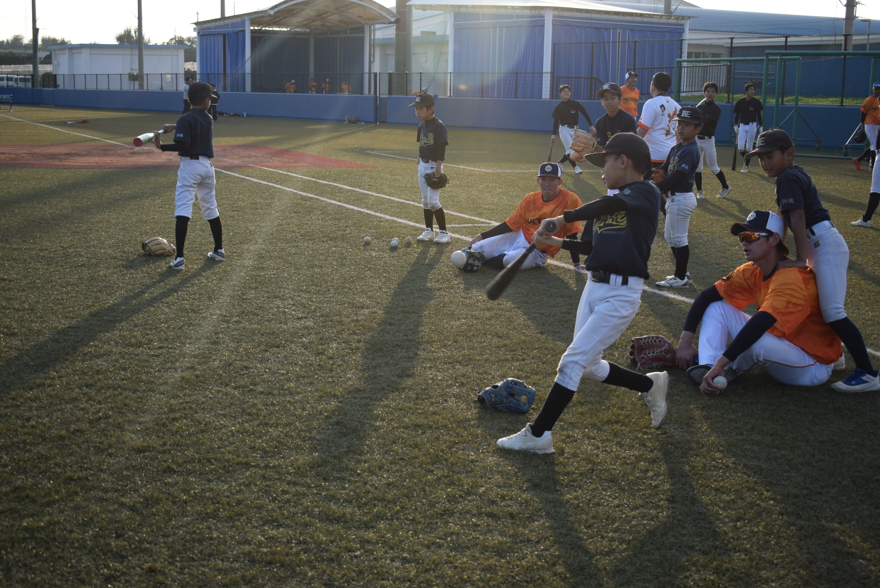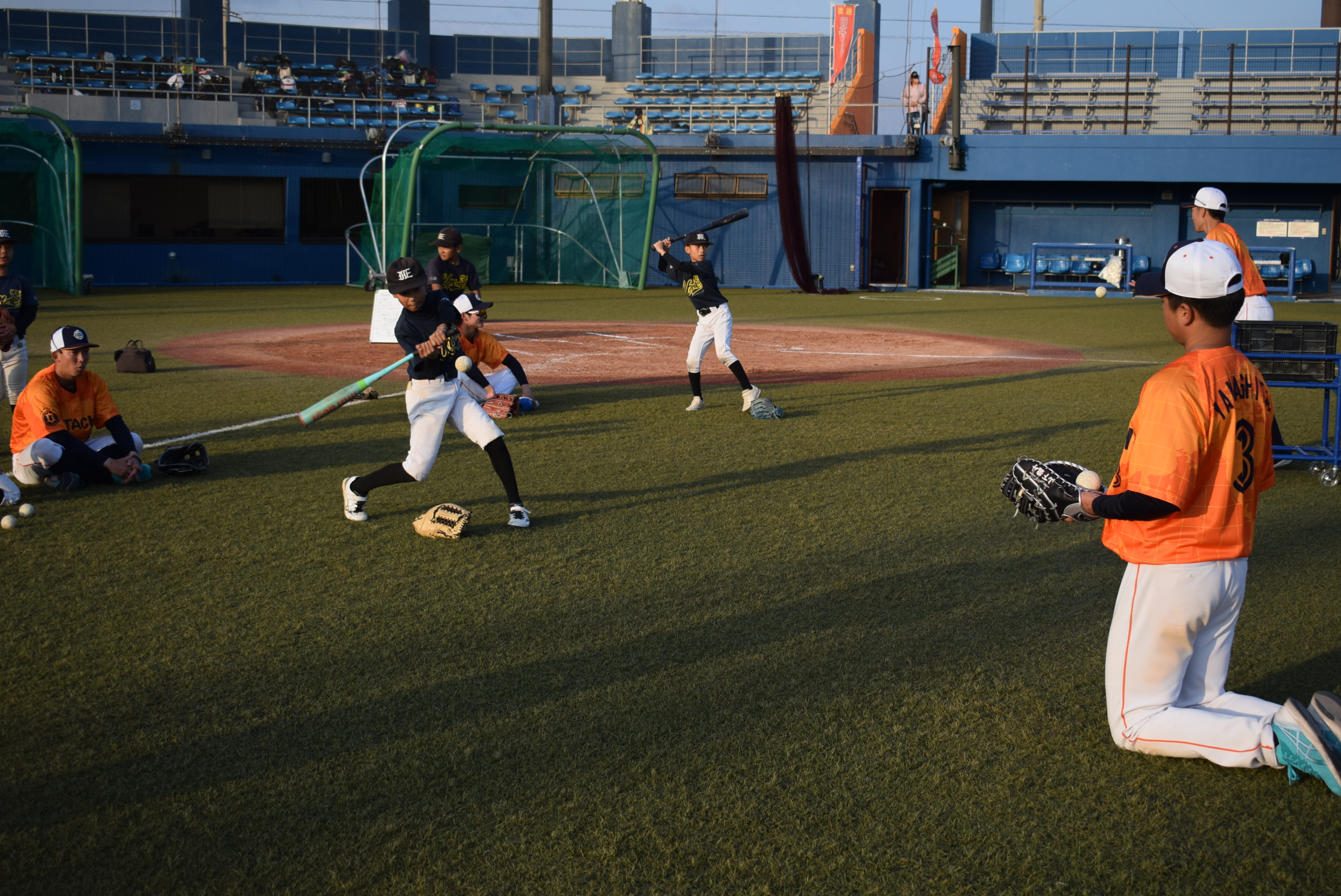 バッティングや守備のアドバイスを受けた子供達は目を輝かせて元気に声を出しながら青空の下でボールを追いかけていました。